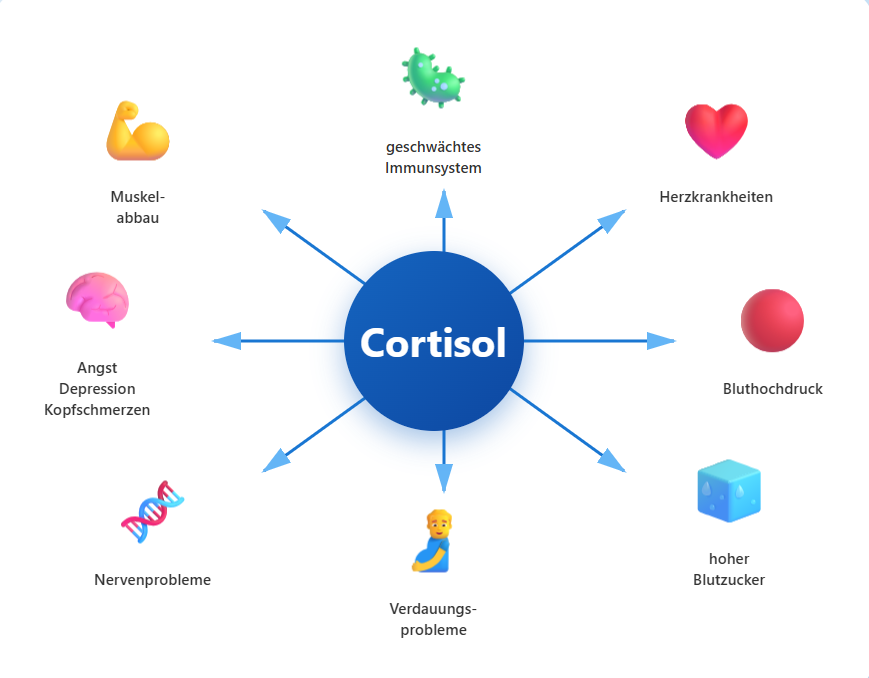 Jeder Tag mit dauerhaft erhöhten Cortisolwerten ist ein verlorener Tag für Ihre Gesundheit und Lebensqualität. Je länger das Stresshormonsystem überlastet ist, desto schwerer wird die Regulierung und desto höher das Risiko für ernsthafte Krankheiten.